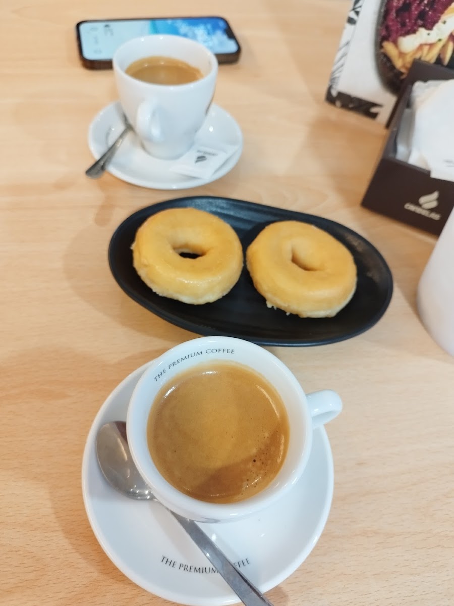 The atmosphere leans towards cozy and familiar, with a clean, welcoming interior and a small terrace for those who prefer to sit outdoors when the weather allows. It's the sort of place where regulars appreciate the friendly, attentive service—staffers tend to be approachable and efficient, creating a low-key environment that encourages lingering over a café solo paired with mini donuts, or enjoying a free pincho de tortilla alongside your coffee.